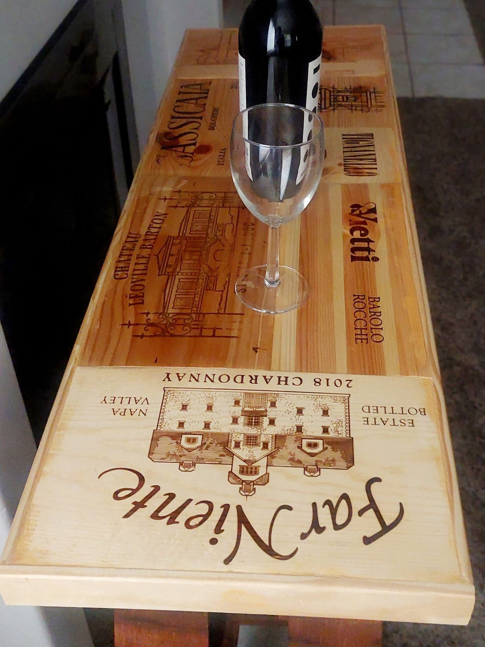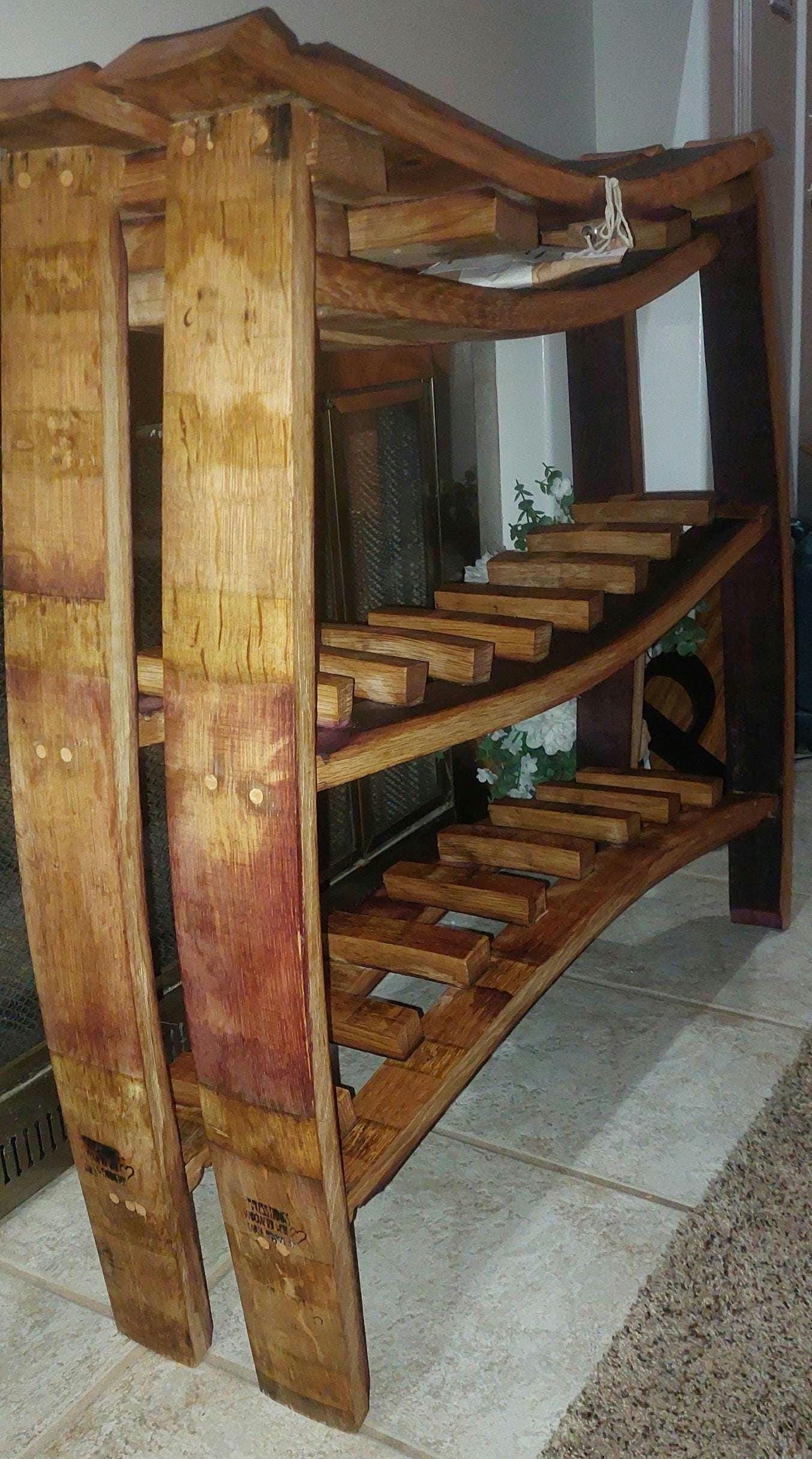 This wine rack is built from a retired California wine barrel — reclaimed French oak that aged deep reds before I gave it a second life. It's sustainable, handmade, and built to last forever. Just like your favorite cam.